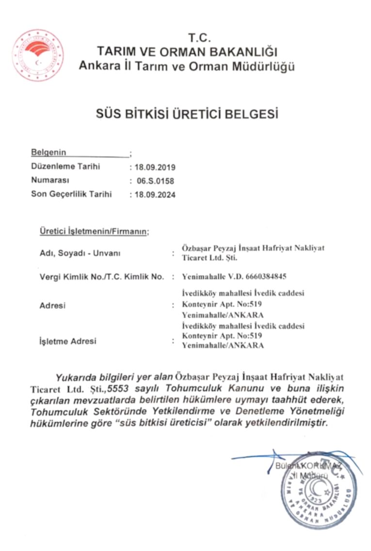 Bunun yanında talepleriniz doğrultusunda ithal ve yerli her çeşit bitki teminini sizler için sağlamaktayız.