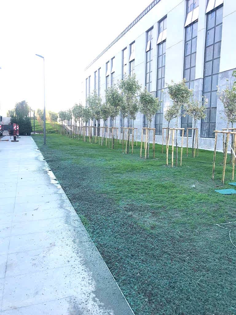 Yargıtay yeni hizmet binasında ; 5 dönüm rulo çim temini ve uygulaması, 15 dönüm Hydroseeding uygulaması(tohum, gübre ve malç karışımının tank yardımı ile alana ince tabaka halinde serilerek çimlendirilmesi), ibreli ve yapraklı olmak üzere toplam 2.000 ağaç temini ve dikimi, 15.000 adet çalı temini ve dikimi tarafımızdan gerçekleştirilmiştir.